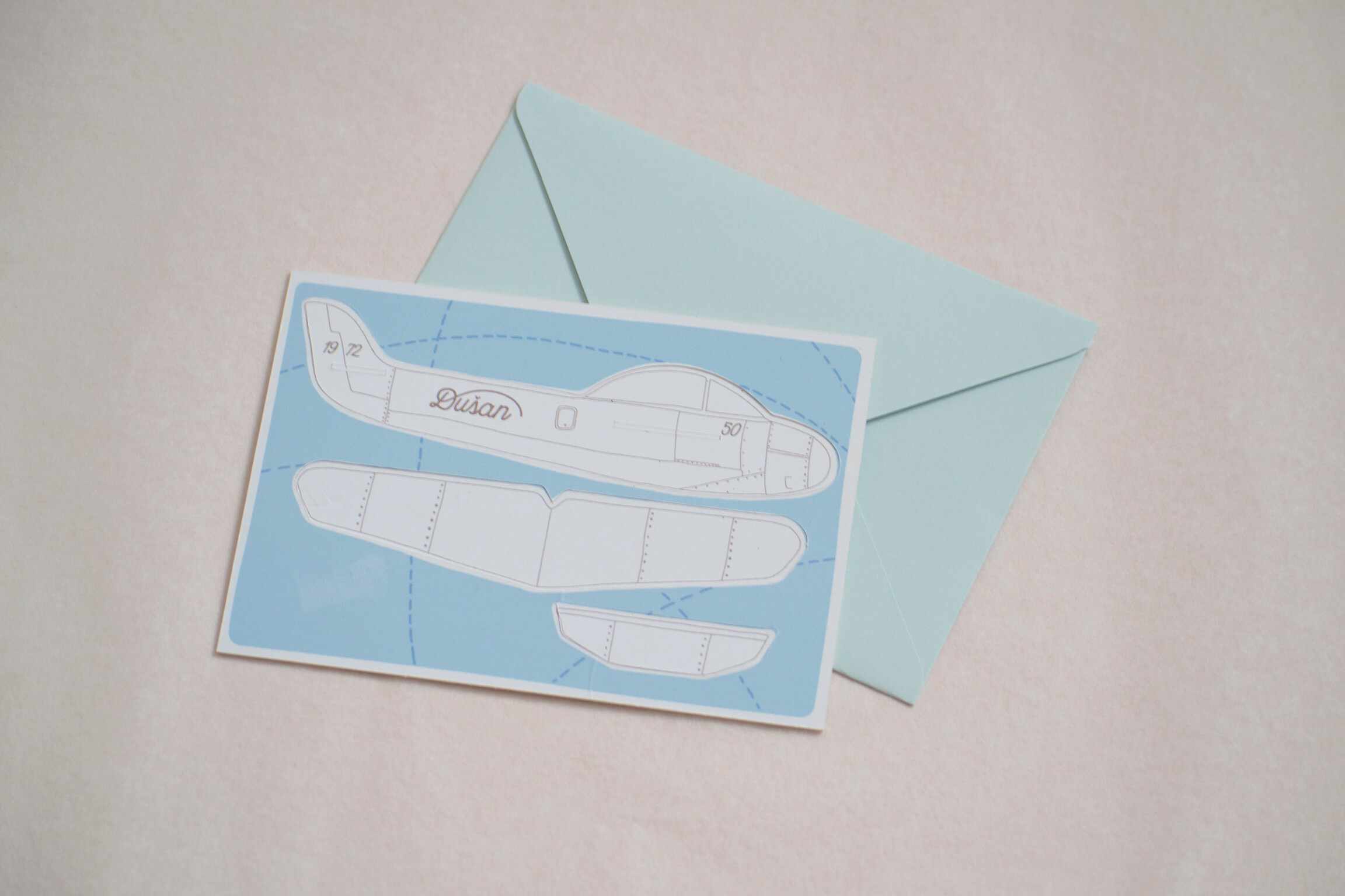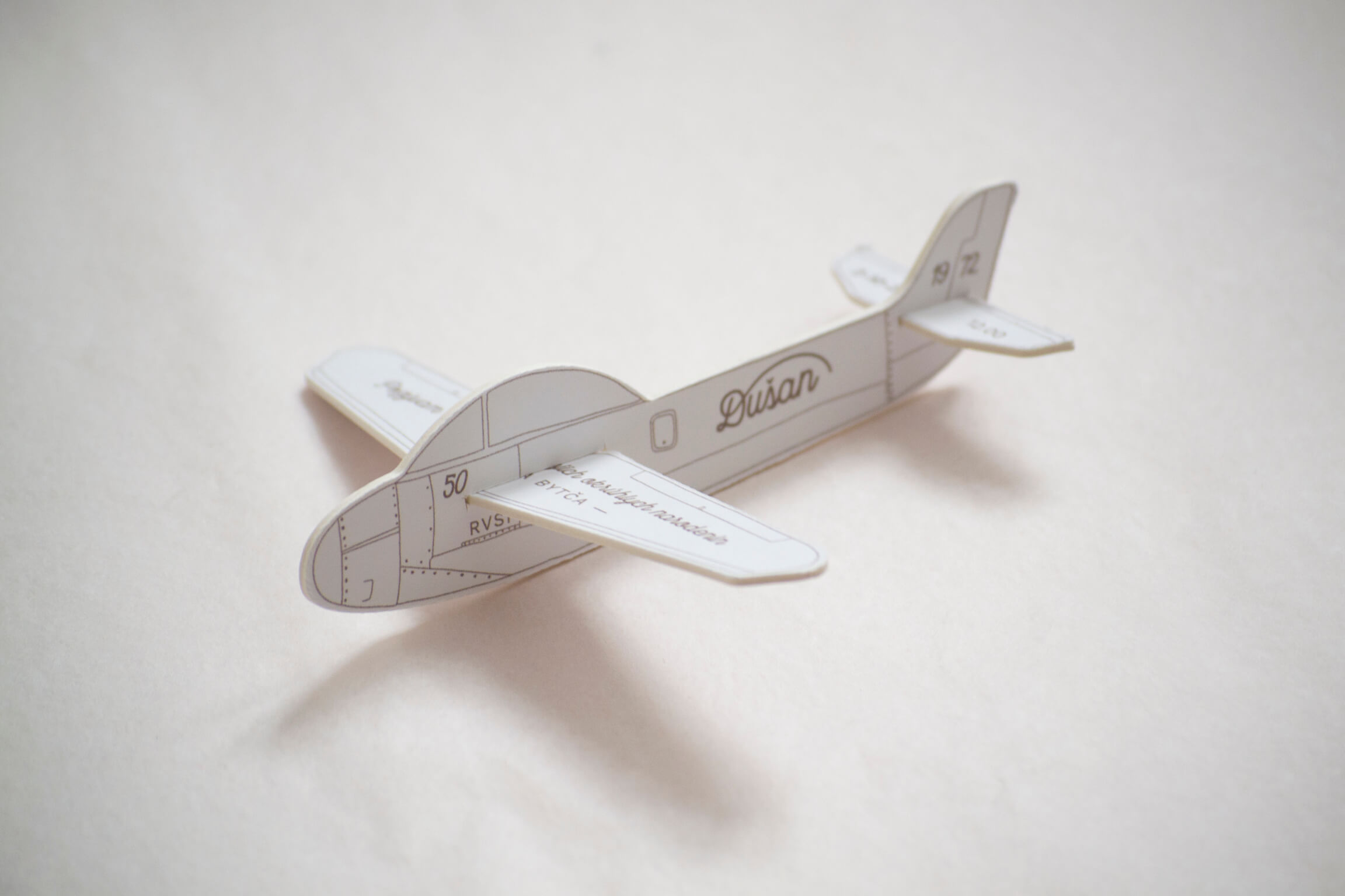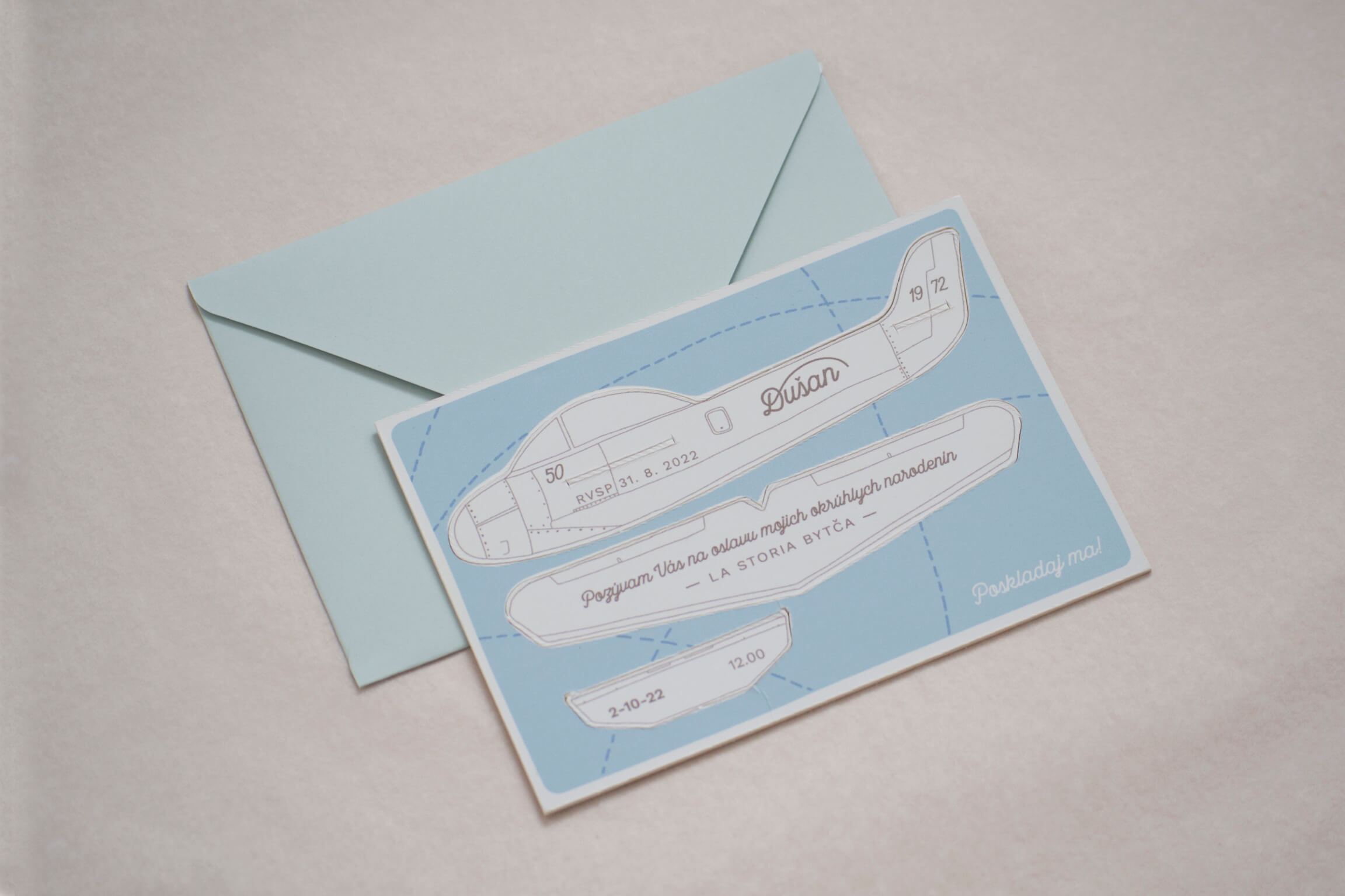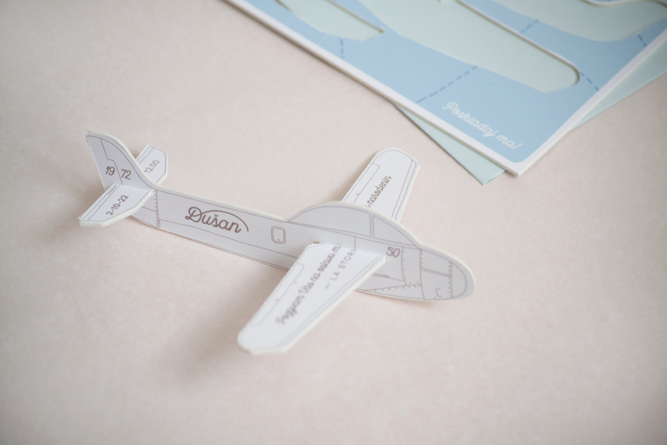 Dušan is the pilot and he asked me for original birthday invitations. It is possible to choose parts of the plane from the invitation cards and fold the simple plane and have fun.